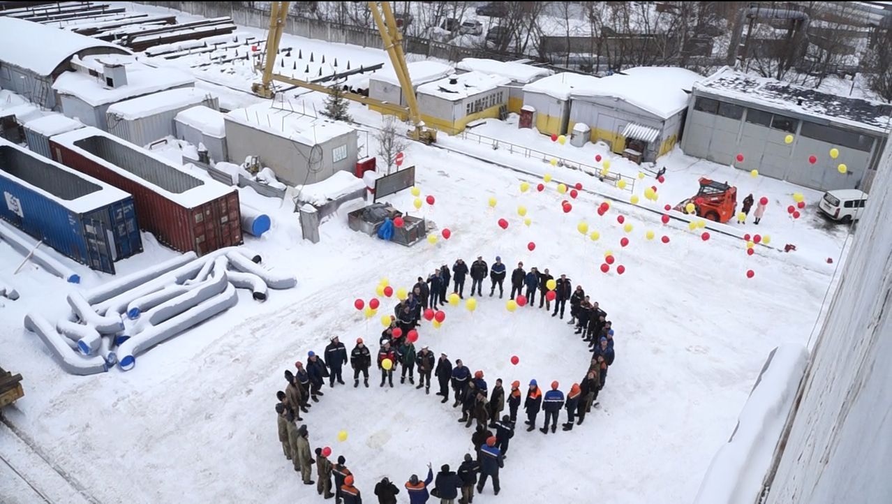 В международный женский день мужчины ООО "ЦЗМ" провели своеобразный флешмоб. Выстроившись во дворе в виде цифры восемь по команде мужчины ЦЗМ выпустили в небо разноцветные шары.